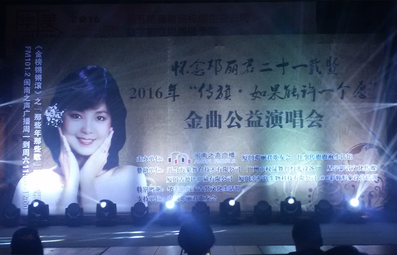 FM101.2闽南之声广播《金榜锵锵滚》作为一档轻松的音乐类节目,特别是在周五推出了《那些年那些歌》,重点推荐老歌,节目已经先后举办了“春夏秋冬”四季老歌品鉴会”、“王建杰歌友会”等线下的听友见面会,通过广播和线下节目的互动,让听友们可以从不同角度回味老歌,品鉴老歌,邓丽君歌曲也常常在节目里受到追捧和点播。因此,该栏目和厦门邓丽君歌迷会合作,一起推出了怀念邓丽君二十一载“传旗.如果能许一个愿”公益演唱会。 很多君迷及闽南之声的忠实听友纷纷来到现场,一同来聆听金曲,一同寻找青春最美好的回忆!