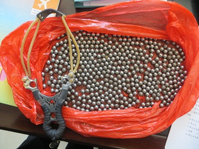 清风网讯:(通讯员 汤彦冬 )5月16日下午,五原火车站派出所客运执勤民警带领值机员在五原火车站三品口开展安检查危工作时,发现一行李包中有疑似弹珠的图像,经执勤民警当场开包检查,查获旅客李先生(23岁,内蒙古包头市人)包内携带弹弓一副、钢珠(直径约5毫米)600颗。经询问,李先生称弹弓是从五原县地摊购买,仅用来玩耍取乐。