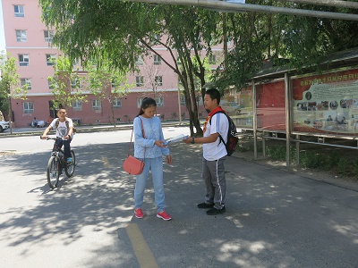 清风网讯: (通讯员 古丽江)2016年6月29日上午,金山北路社区干部在电视上看到利用电话进行诈骗的案件频发,很多老人都上当受骗,为增强辖区居民防范意识,金山北路社区团总支组织青少年志愿者们,将防电话诈骗的警方提示宣传单分发给社区居民,提醒居民不要轻信陌生来电、短信,特别是对辖区内的空巢老人及孤寡老人进行再三嘱咐。