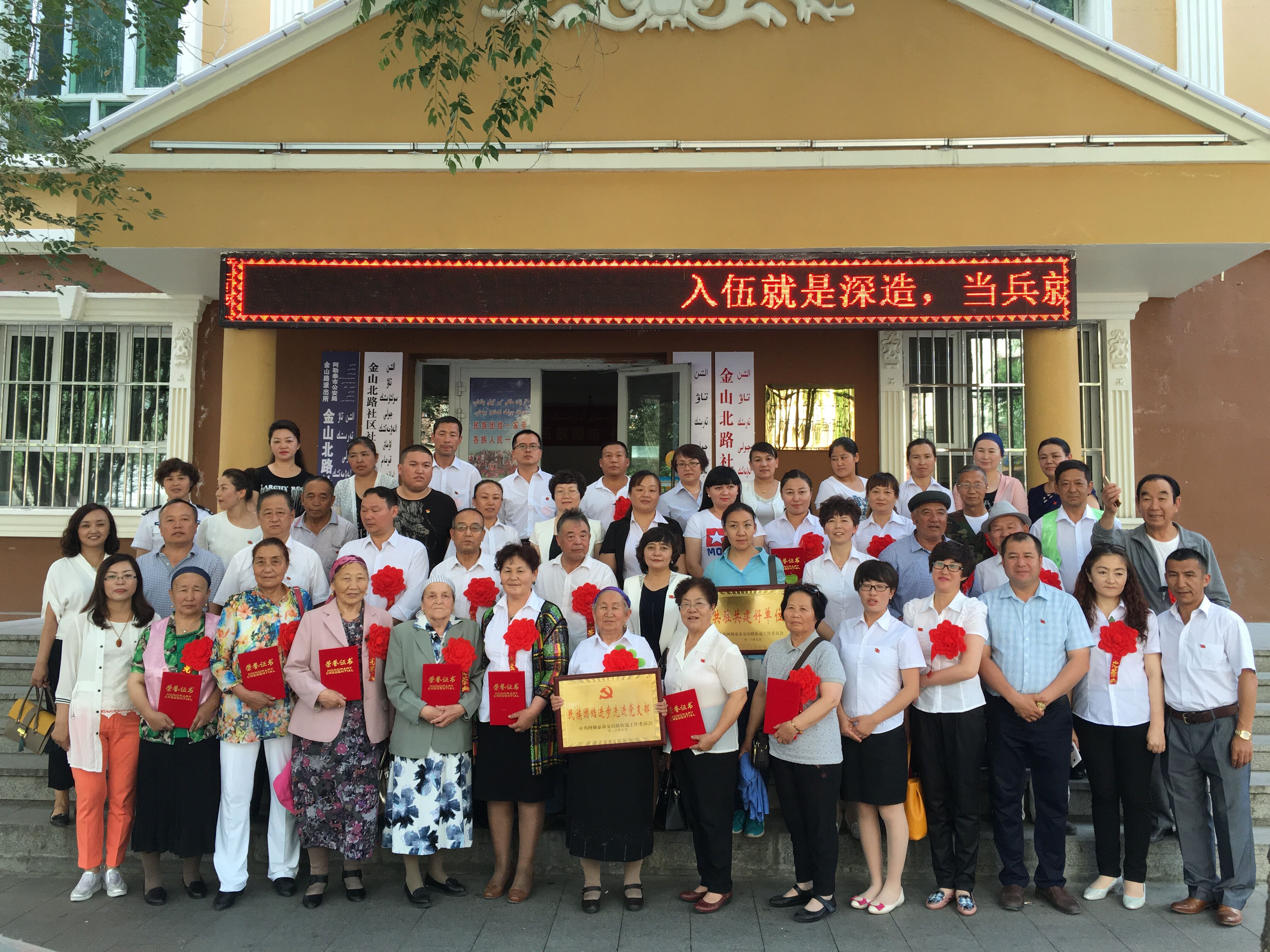 在党的生日即将到来之际,全体党员面对着党旗共唱国歌,重温入党誓词,回味入党时那份激动的心情;重温“金山七彩义工”宣誓词,庄重承诺尽己所能帮助他人,服务社会,争当最美七彩义工。会上,对在加强基层党建和推进街道义工事业发展中涌现出的民族团结进步先进党支部、民族团结进步优秀共产党员、共驻共建好单位、在职党员社区服务之星、优秀七彩义工进行了表彰。“民族团结进步优秀共产党员”获奖者司法所所长易春莲说:“获得这份殊荣我感到非常荣幸,这是党组织对我的认可,做好民族团结进步工作是我们共产党员应该做也必须做的,在今后的工作中,我也会一如既往地团结各民族同胞,做好纠纷调解工作,将问题化解在源头上。”