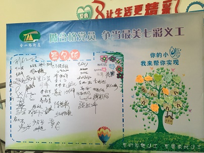 会后,党员们认领了从贫困家庭收集的“微心愿”,帮助贫困家庭实现一个小愿望,并签名承诺做合格党员,争当最美七彩义工。