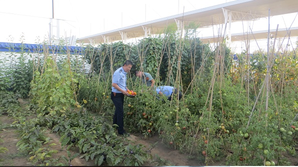 然而我最佩服“大圣”的一点,还是他把小小的达旗西所变成了“花果山”,也让我这个92年出生的小猴子把这里当成了自己家。孙悟空被压五行山下五百年,与孤独寂寞为伍,靠泥土露水为食。达旗西所虽然不像五指山那么可怕,也不像策克额济纳那么偏远,但是周围方圆十五里内荒无人烟,想喝到干净的水要到几里外村庄去打,处在深处坑内的派出所更是时常信号也没有。“大圣”带领全所民警齐心协力在派出所院内东南角将垃圾清理干净,将沙子换成了泥土,开垦出了一片属于我们自己的菜地。他又带着大家修建了国旗台,硬化路面,划出羽毛球场等等,让这个深坑里的小所充满了能跨过高山的快乐,全所民警安检民兵在“大圣”的凝聚下早融为了一家人。我是派出所里最小的民警,“大圣”常笑着说,我去了之后我们所的平均年龄才降低到47.5岁,但也因此我收获了最多的关心和爱护。“大圣”总是询问我饭菜合乎我的口味么,是不是想家,偶尔半夜行动或是加班时也总是要我先休息。这些点点滴滴使我这个远离家乡独自出来打拼的小姑娘感觉到了家的温暖,对家的思念也被所里温馨的气氛一点点冲淡。