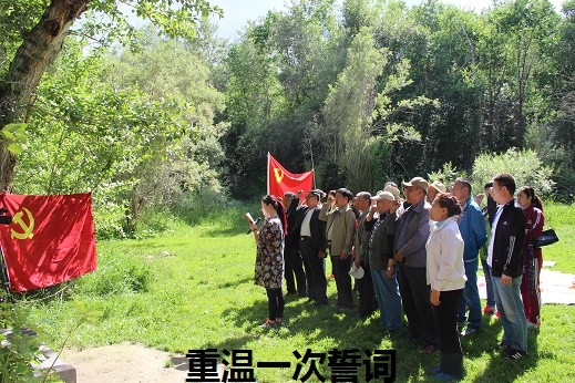 文化路社区党委通过“弘扬长征精神,践行‘两学一做’,凝聚坚定的政治信仰”主题户外党课实践活动,在沙里福汗公园,文化路社区党委书记高云同志带领全体党员高举右手重温入党誓词,并详细解读“誓词”要点。