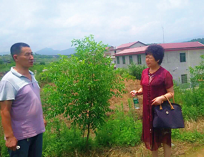 :7月6日,湖南省新邵县计生协会会长彭红飞(右)来到陈家坊镇长塘村计生家庭叶支雄的冬枣生产基地了解情况,为其发放小额贴息贷款2万余元。近年来,该县计生协会积极实施农村计划生育家庭小额贴息贷款项目,通过强化宣传、服务和引导,切实为贫困计生家庭脱贫致富排忧解难。