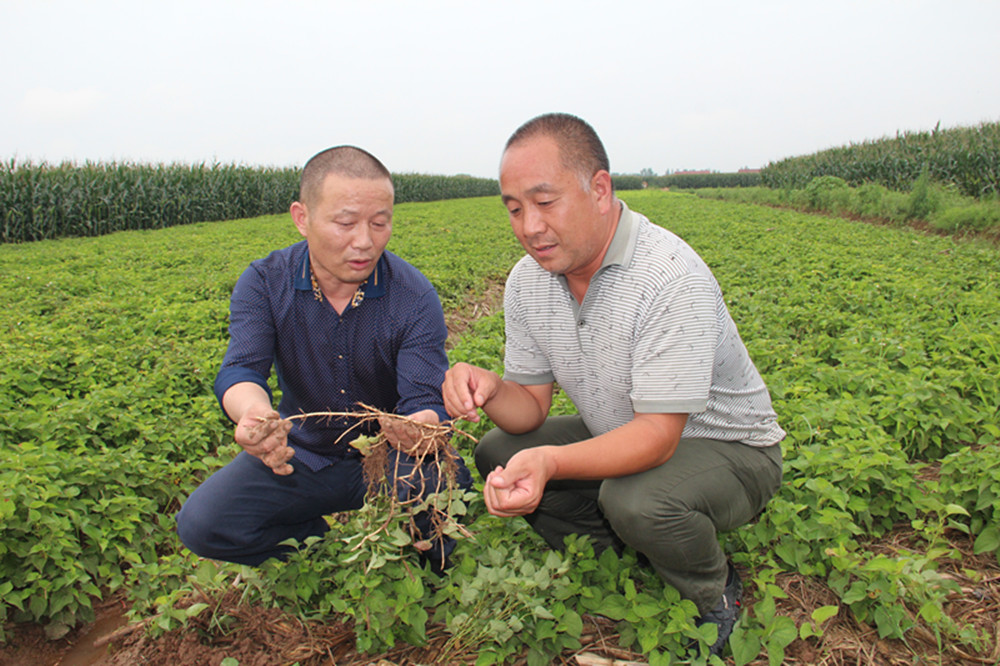 图为镇农业服务中心的技术人员在赵闸村进行技术指导
