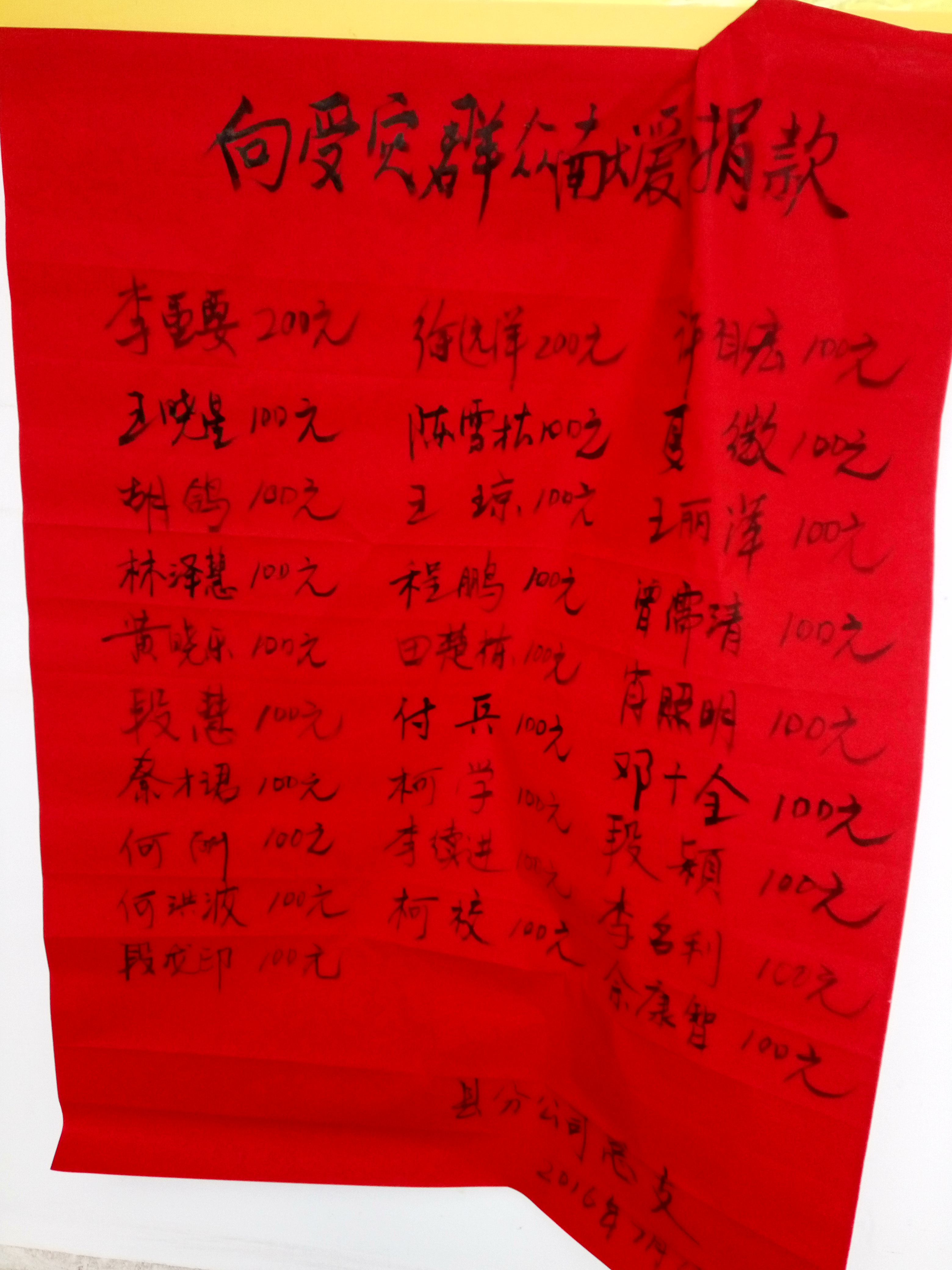 日,英山县邮政局干部职工在自家也遭受洪灾的情况下,主动献爱心,积极捐款,共计捐款