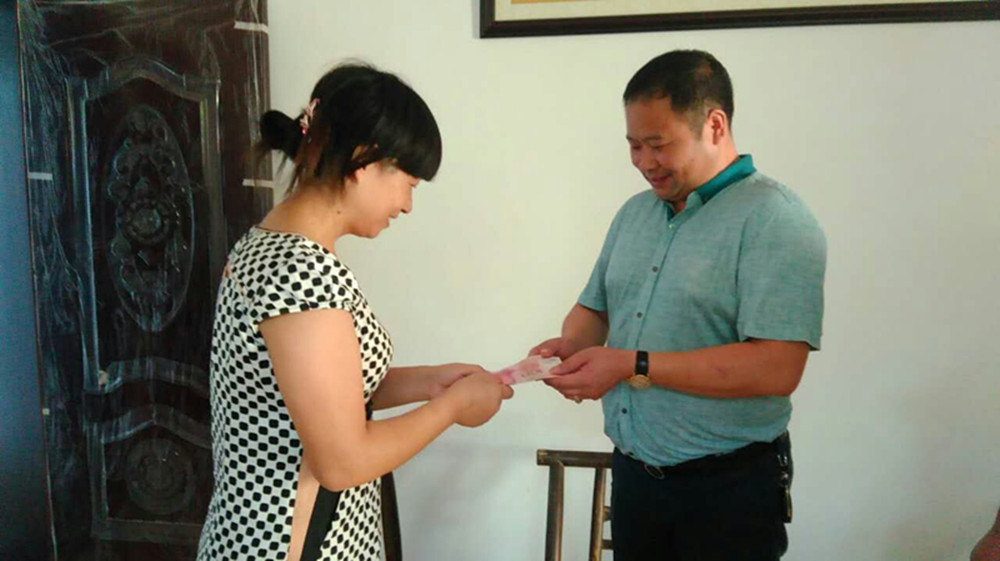 寒门学子考上了大学,正筹学费无着落的时候,有谁能跟他们“送”学费让他们圆了大学梦吗?有!湖北省当阳市两河镇就发生了这么一回事:8月24日下午,有一名爱心人士亲自把学费送到了富里寺村和社区两位贫困学生田世林同学及黄书剑同学母亲的手里!