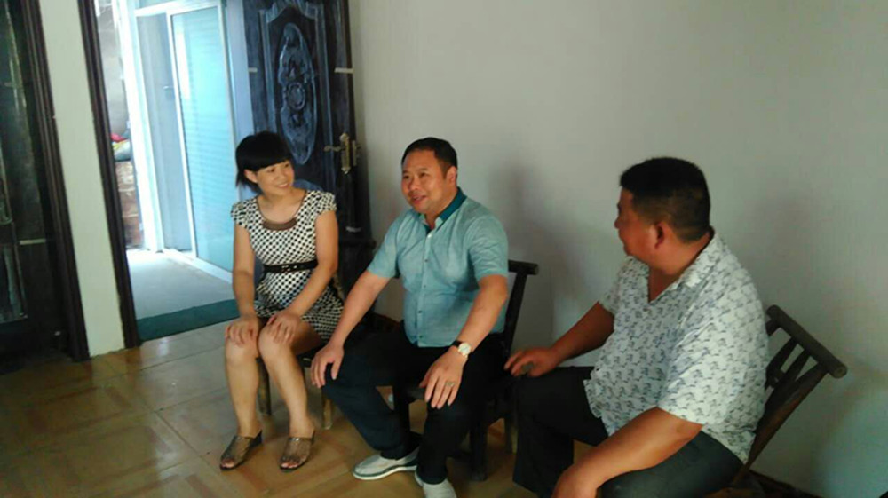 图为吴金平(中)与黄书剑同学母亲(左)交谈