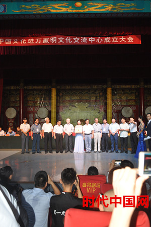 时代中国网消息周青报道:2016年7月24日上午10时许,中国文化进万家明文化交流中心在北京昌平十三陵景区成立。十届全国政协常委、国家民委原常务副主任陈虹;第九届、十届全国政协委员、中共中央党校校委原委员王瑞璞;解放军原某部将军刘克仁;国家发改委宏观经济管理中心司长宋承敏;中华文化传承系列活动组委会主席周梓钦;中央国家机关书画家协会常务理事、中国残联书画家协会副主席兼秘书长陈双全;中国文化进万家工作委员会主任武振江;中国文化进万家工作委员会明文化交流中心主任周福山等领导与来自国家机关、社会社团、北京市和昌平区相关单位,涵盖文化界、传媒界、经济界、学术界等各界人士二百余人出席了本次活动。我网总编周秋连应邀出席。