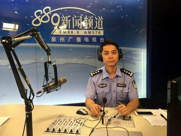 图为泉州市公安局出入境管理支队庄志斌政委正在参与“政风行风热线”直播活动