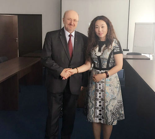 白俄罗斯议会主管科教文卫体的领导萨罗卡与邹红平合影留念
