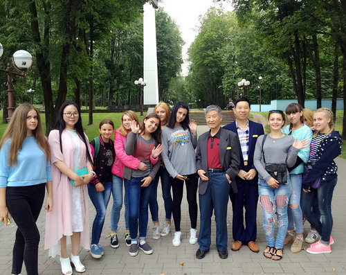 陈谋、刘瀚锴、沈春霞与白俄罗斯艺术学院的学生们在一起亲切交流并合影留念