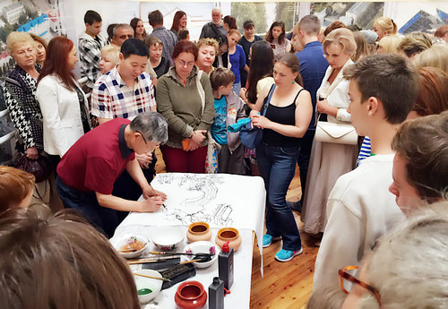 我国著名画家陈谋先生在白俄罗斯世界美术大赛现场进行创作