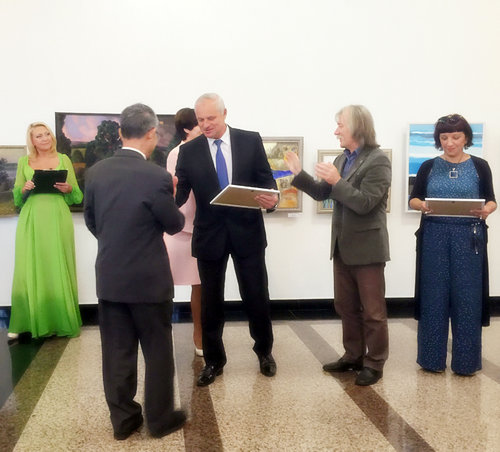 白俄罗斯世界美术大赛组委会领导为陈谋先生等获奖者现场颁奖