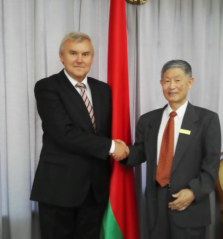 白俄罗斯共和国外交部副部级官员格林科维奇与陈谋亲切握手
