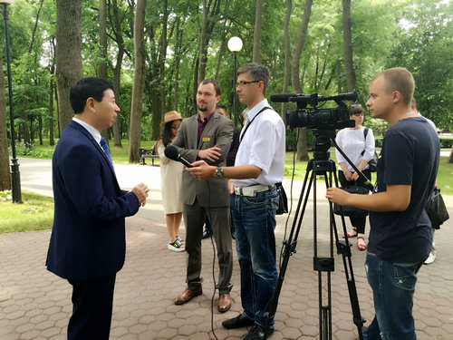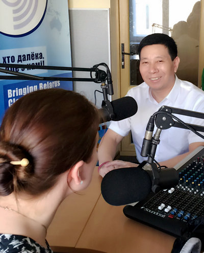 刘瀚锴在明斯克接受白俄罗斯国家广播电台优秀记者紫萱采访