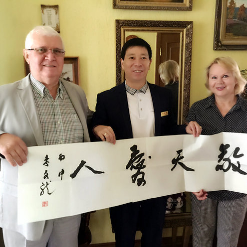 刘瀚锴、陈谋、沈春霞、邹红平、筱闵在白俄罗斯共和国明斯克州以及莫洛杰奇诺市参加活动期间,还分别接受了白俄罗斯国家电视台;国家广播电台等多家媒体的联合采访并与白俄罗斯优秀记者紫萱进行切磋交流。白俄罗斯共和国前最高委员会主席、首任驻华大使古兹涅佐夫先生在百忙之中,亲切接见了刘瀚锴;陈谋;沈春霞;邹红平;筱闵;王国安;刘金山;胡振奎一行,刘瀚锴;陈谋;邹红平;沈春霞;筱闵还专门前往看望了中国人民的好朋友伊戈尔·巴巴克先生的老母亲和妻子。此次活动得到了白俄罗斯驻华大使馆;白俄罗斯共和国外交部;白俄罗斯共和国文化联盟等部门的大力支持!在此一并表示感谢!衷心祝愿中国-白俄罗斯友谊之树常青,友谊之花常开,中白文化艺术及书画商贸交流活动取得了圆满成功!