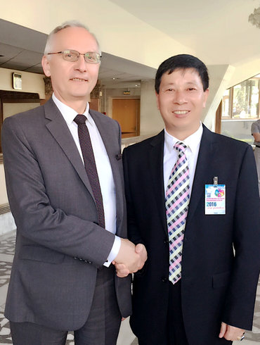 白俄罗斯共和国文化部部长斯维特洛夫先生与刘瀚锴先生亲切握手