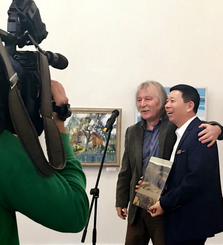 独联体艺术家联盟领导、白俄罗斯艺术家联盟主席雷格尔与刘瀚锴亲切交流