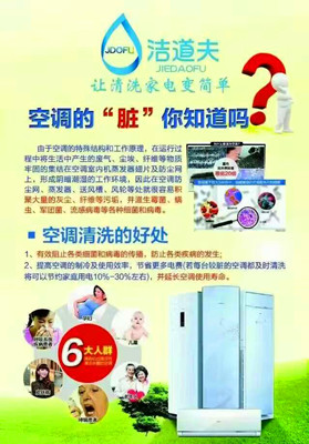 由于空调的特殊结构和工作原理,空调在运行过程中在工作过程中将生活过程产生的废气、尘埃、纤维等物质牢固的集结在空调室内机蒸发器翅片及防尘网上,并形成阴暗潮湿的工作环境,在防尘网、蒸发器、送风槽、风轮等处就很容易积聚大量的灰尘纤维、污垢,并滋生霉菌、螨虫、军团菌、流感病毒等各种细菌和病毒。