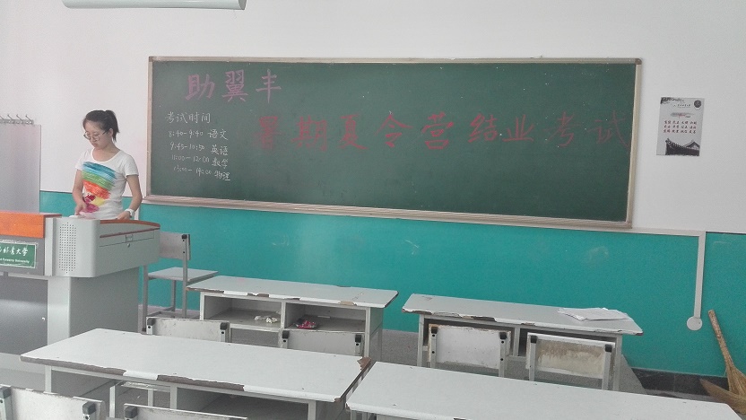 8月14日,本次志愿活动的结业考试正式举行,考试题目丰富多彩。出现“老师的名字是什么”这样的神考题,表达着老师对孩子们深深的不舍。各个班级合影留念,孩子们赠予老师礼物,表达对老师的依恋与感谢。此次活动主要负责人魏喜才说到:“我们与天下所有老师一样,希望学生成才。希望助翼丰今日带来的一切,明日可以撒播他人!”本次活动虽然结束了,但相信在不久的将来,会有更多的人加入到志愿服务中来,为社会贡献出自己的一分力量。