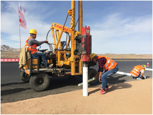 新疆明哈高速公路副指挥长李富贵、第五监理办高级驻地田向红等领导莅临施工现场。MHJA-1护栏工程作为全线交安工程的首件工程,李指挥长对MHJA-1标率先开工表示祝贺,对现场组织施工情况给予肯定,同时提出殷切希望。中交一公局明哈高速公路MHJA-1标项目部自进场以来,就以问题为导向,迎难而上,夯实项目管理基础,抓管理,抓考核,抓文化,树形象,创效益,精心组织,开好局,打好“第一仗”,积极落实“进场早、筹备早、开工早”工作思路,项目经理史东升在施工现场召开专项施工动员会和现场交底会,从施工安排、质量控制到安全文明施工都详细部署,将交安工程建成明哈高速公路示范性工程。