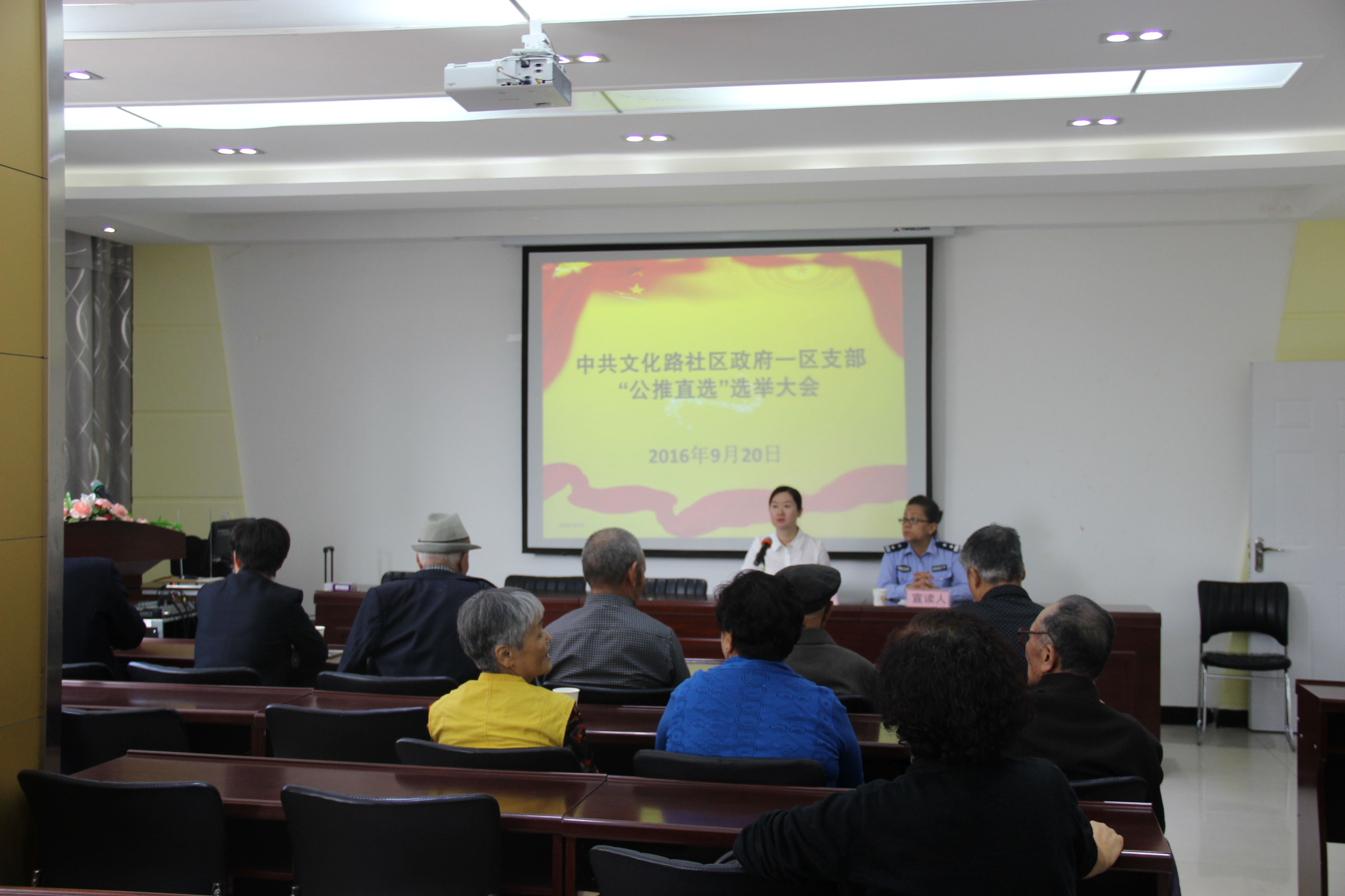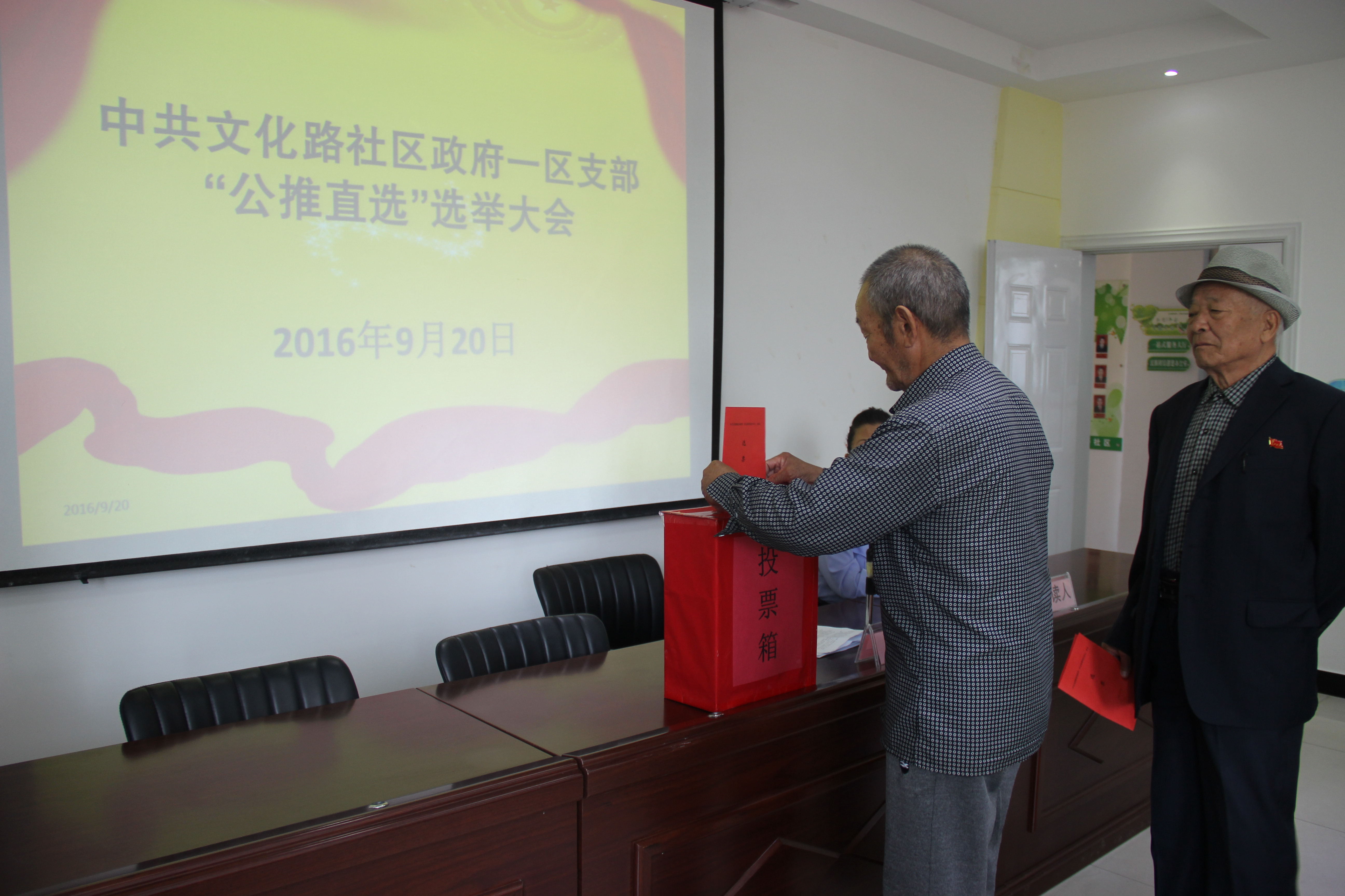 清风网讯:(通讯员 玛依拉)9月20日上午,阿勒泰市文化路社区在会议室隆重召开了中共文化路社区政府一区支部“公推直选”选举大会,11名正式党员参加了此次会议。会上,首先由社区党委书记高云向大会作了支部工作报告,报告全面总结了近年来的工作情况以及所取得的成绩。随后,大会以差额选举的办法和无记名投票的方式,选举支部委员会书记、委员分别是:王家学、生红英、刘萍、邓万志。经过2个小时的会议,选举邓万志同志为支部书记,生红英、刘萍为委员。
