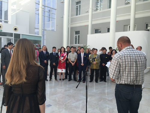 此次乌克兰文化艺术-商贸之旅代表团团长刘瀚锴先生在画展开幕式讲话中,首先向在场的中乌各界友好人士和书画爱好者以及我国优秀书画家钱玉清;敖特;刘俊;王余根;高象胜;贾四友送上真诚的祝福。刘瀚锴先生在讲话中同时感谢乌克兰文化部前任部长库乐尼亚克先生的热情邀请!感谢乌克兰驻华大使馆以及焦明大使的大力支持!感谢乌克兰国立舍甫琴科国家博物馆提供的展览平台!感谢中国驻乌克兰大使馆教育处负责人汪金国先生夫妇一行的亲自光临!感谢代表团6位书画家以外的董铁昆;邹红平;邢连忠;邹小林;孙潇;刘钇含各位代表团成员的密切配合!感谢乌克兰驻华使馆文化专员列娜以及乌克兰优秀中文翻译伊万娜;部长秘书安东宁娜等人的辛勤劳动和友情翻译。中国书画名家作品展开幕式,分别由乌克兰国立舍甫琴科国家博物馆副馆长希列恩科·尤利娅与乌克兰优秀中文翻译伊万娜主持。