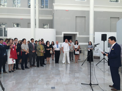 乌克兰文化艺术商贸之旅代表团团长刘瀚锴在艺术名家画展开幕式上致答谢词