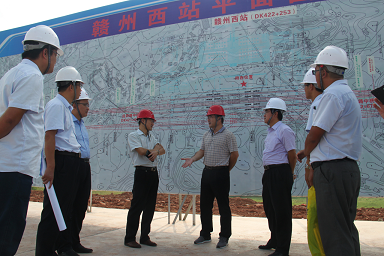 清风网讯 :(特约记者 常魁星 通讯员 王孚) 国庆节将至,9月19日,江西昌九城际铁路公司董事长陈乃武、赣州建设指挥部指挥长肖矜,在中铁二十一局集团党委副书记、工会主席庄纪栋陪同下,到昌赣客专12标工地检查国庆节前工程安全质量,督导施工进展。