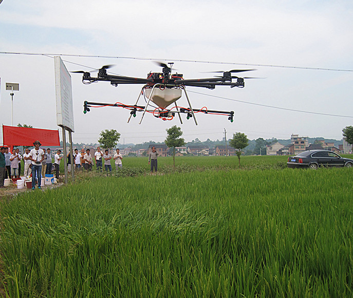 湖南新邵陈家坊镇:首用遥控飞机防治水稻病虫害