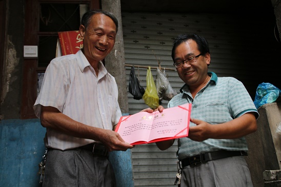 黄平县史志办主任刘治平上门将《文物捐献证》送给盛治久先生