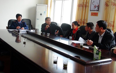 潘鹤程(左二)在组织诉、辨双方进行调解