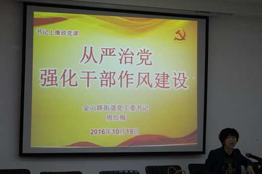 10月19日,金山路街道党工委书记周红梅在为街道、社区全体干部上廉政党课时,频频与干部们互动,瞬间拉近了“老师”与“学生”之间的距离,引起了大家的共鸣。