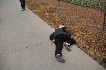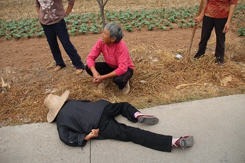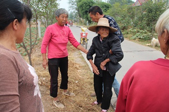 当时,有几个路人途经此地时,看到一个老太太头戴草帽,倒在路边一动也不动,生死不明。于是他们首先拨打110电话报了警,随后边保护现场边喊来几名当地群众,到老人身边辨认人员和察看生命体征等情况。经现场察看,确认老人还活着,老人正处于昏迷状态,当地的几名村民都认识她是本村五组已年过八旬的刘老太太,她因患有癫痫病,经常跌倒。于是,大伙边跟老人的家人联系,边轮流呼喊着“ 刘婆婆!”......大约过了几分钟,刘婆婆终于苏醒睁开了眼晴,大伙齐心将老人扶了起来。 “ 我就是全身没有力气!”老人被扶起后的第一句话就这样说道!