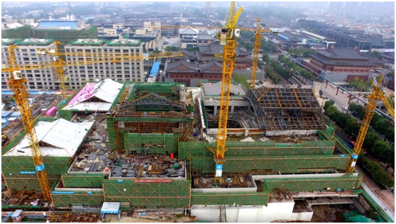 该工程于2016年3月10日开工,中建二局三公司唐山分公司项目部斗严寒战酷暑,精心组织,科学施工,抢进度、抓质量、保安全,在保证高履约的情况下,克服施工困难,实现了高效崛起。在不到半年的时间就完成了主体结构施工,创造了一个华丽的古典童话,为陕西建筑留下了浓墨重彩的一笔。