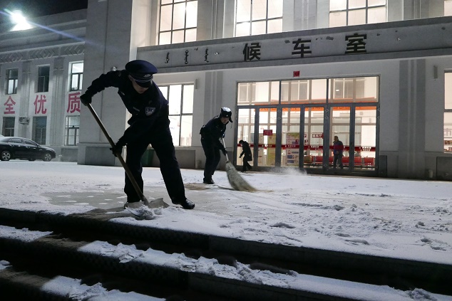 锡林铁警积极应对冰雪降温天气