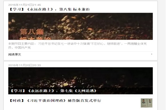 支部为巩固学习效果,在组织开展集体学习之外创新利用微信公众号这一新媒体平台开展线上《永远在路上》视频学习和十八届六中全会要点解读,并采用后台留言,每周小论等方式。检验学习成效,促进支部成员共同发展。