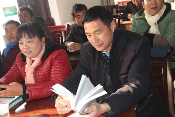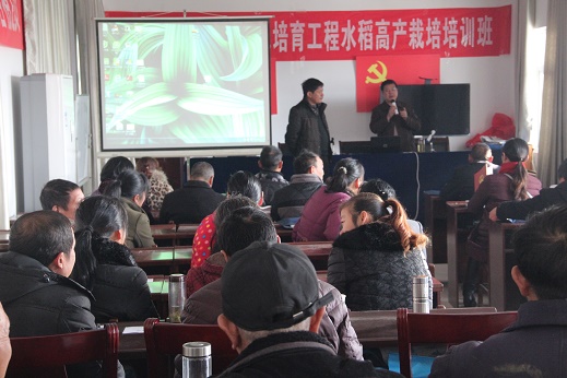 图为坳口村新型职业农民培训工程水稻高产栽培培训班现场