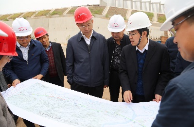 在调研现场,王继红、庄纪栋分别汇报工程情况,截止到11月30日,桥梁完成22714成桥米,完成设计的77%;隧道累计完成4299成洞米,完成设计的70%,16座隧道已贯通6座,预计在元月底还要贯通5座隧道;预制箱梁244孔,完成设计的30%,架设箱梁147孔,完成设计的16%;路基土石方完成563万立方米,完成设计的81%;预制轨道板累计完成7271块,完成设计的23%。