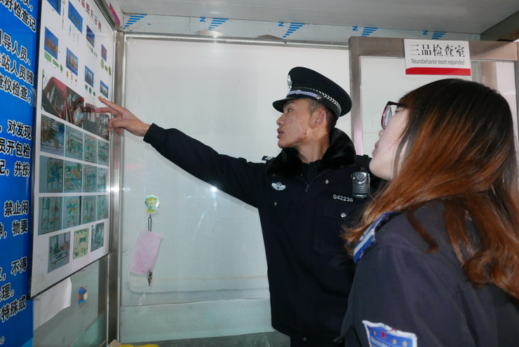 期间,民警组织安检员对安检中存在的问题进行现场指正,并向安检员讲解了危险品的种类及特征、手捡和机检的标准作业流程和各类危险品的鉴别方法以及工作注意事项,强调安检员必须提高思想认识,按照安检“全覆盖”要求,切实做到“逢包必检、逢液必查、逢疑必问”, 坚决杜绝安检措施落实不到位、工作流程执行不规范情况的发生,严把各类危险品堵在站外车下,确保铁路运输生产安全。