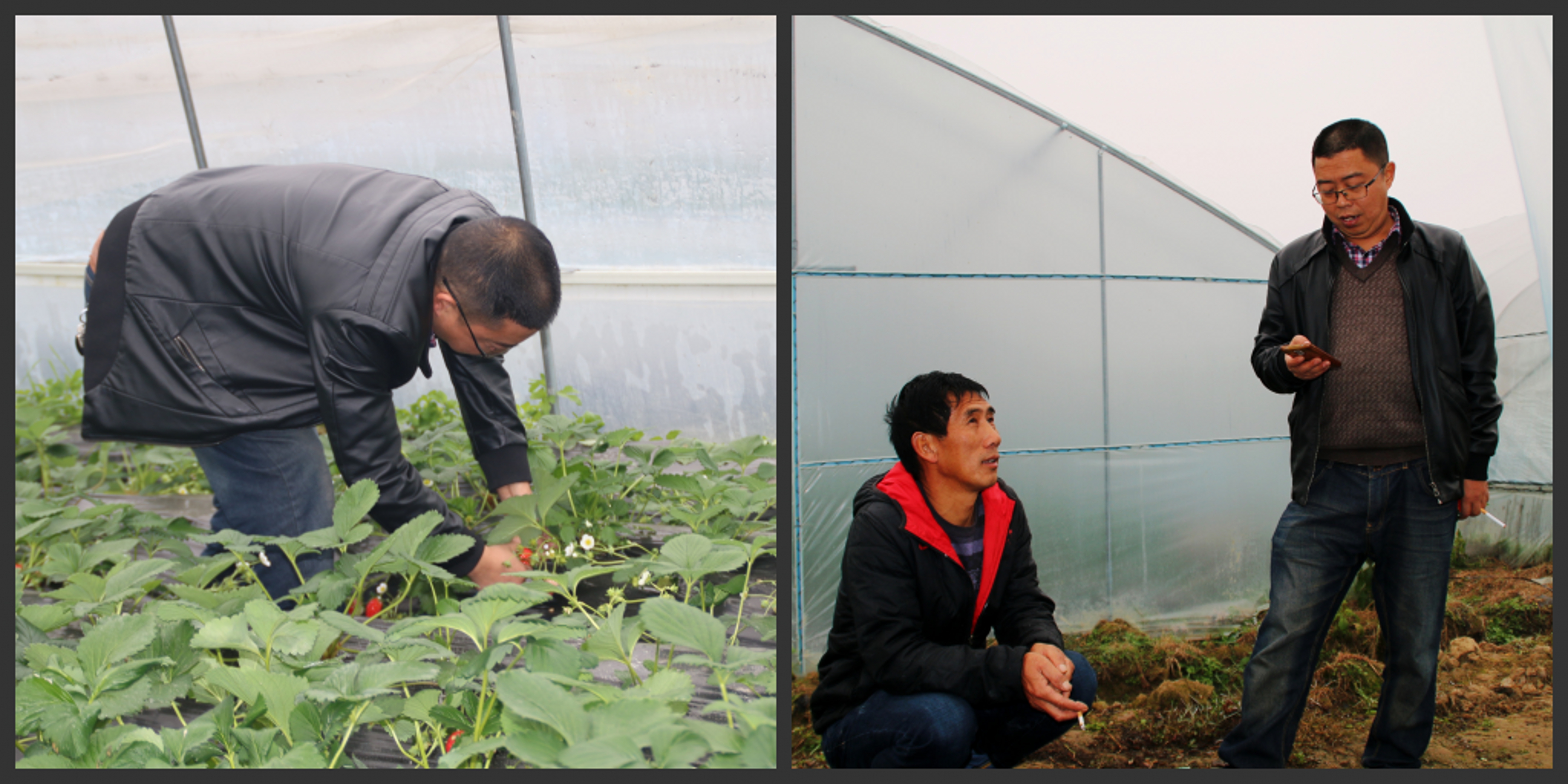 省水利厅驻村工作队副队长素坤同志在草莓种植大棚给农户计算收入账目