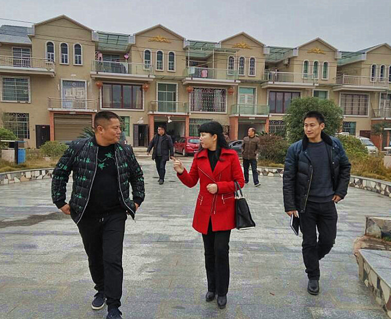 图为何美艳(中)在富阳村考察“同心乡村”建设情况