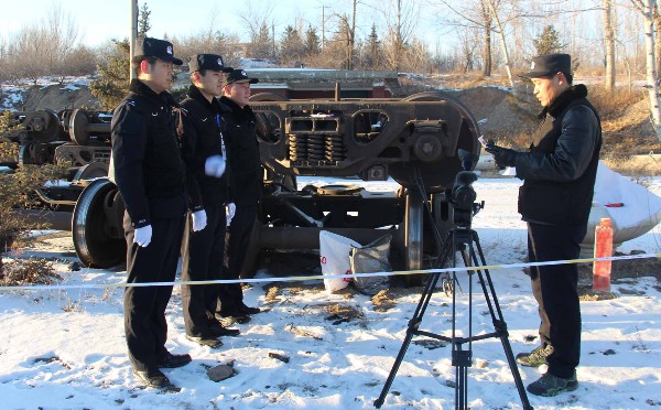 下午14时演练正式开始,参训民警驾车携带执法记录仪、相机等现场勘查及防护设备装置赶赴现场。首先由教导员刘广林就铁路事故现场勘查基本知识要点进行现场讲解,并就事故现场勘查技巧、注意事项进行强调。在演练过程中,参训民警按照《铁路公安机关现场勘验检查规程》中的规定,从到现场保护、到现场实地勘察、再到现场勘查卷宗的制作,逐步完成了此次现场勘查模拟演练工作。