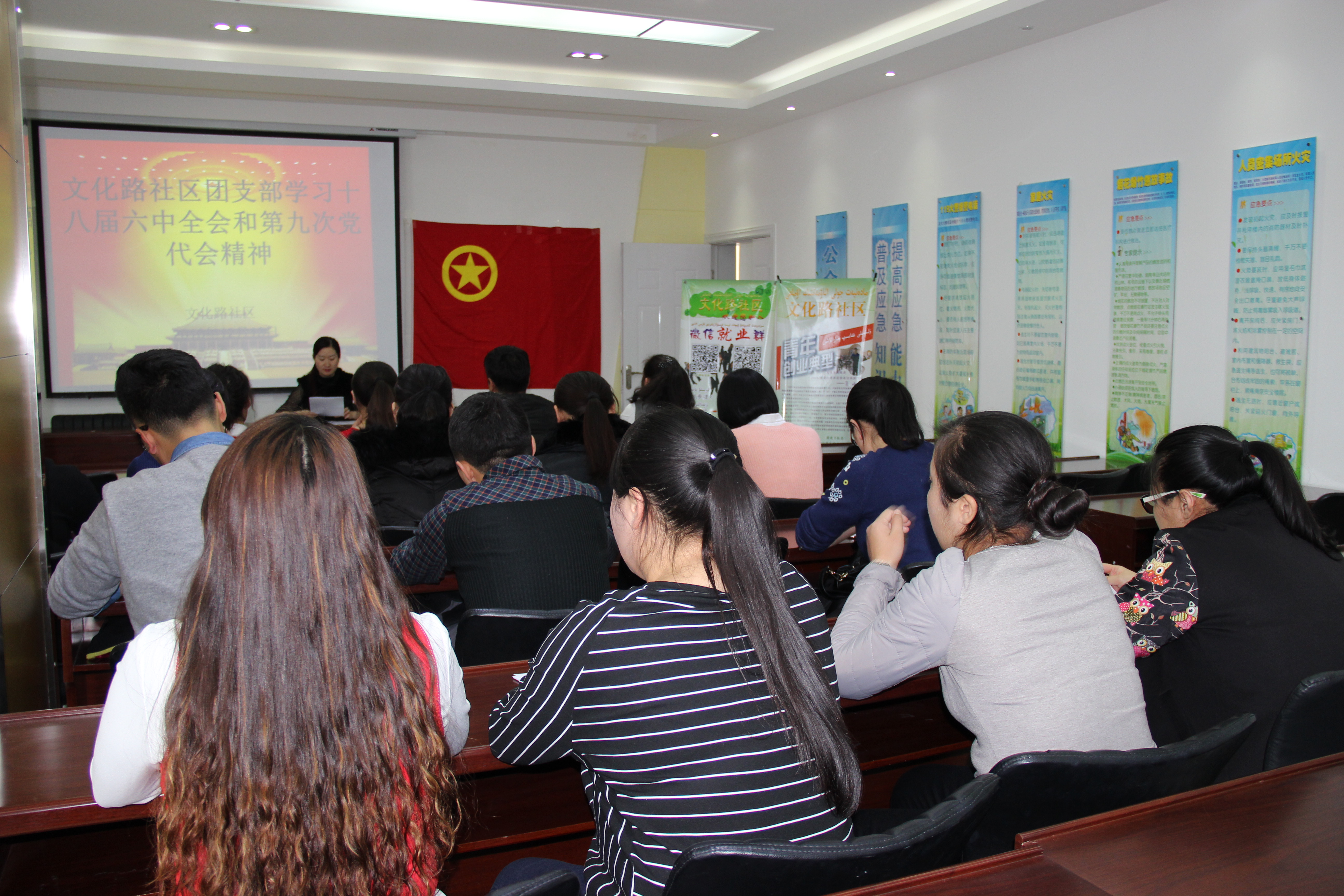 清风网讯∶(通讯员 沙亚)为进一步掀起学习贯彻党的“十八届六中全会和自治区第九次党代会会议精神”, 12月13日下午文化路社区团总支组织辖区28余名团员、青年学习了“十八届六中全会和自治区第九次党代会会议精神”。