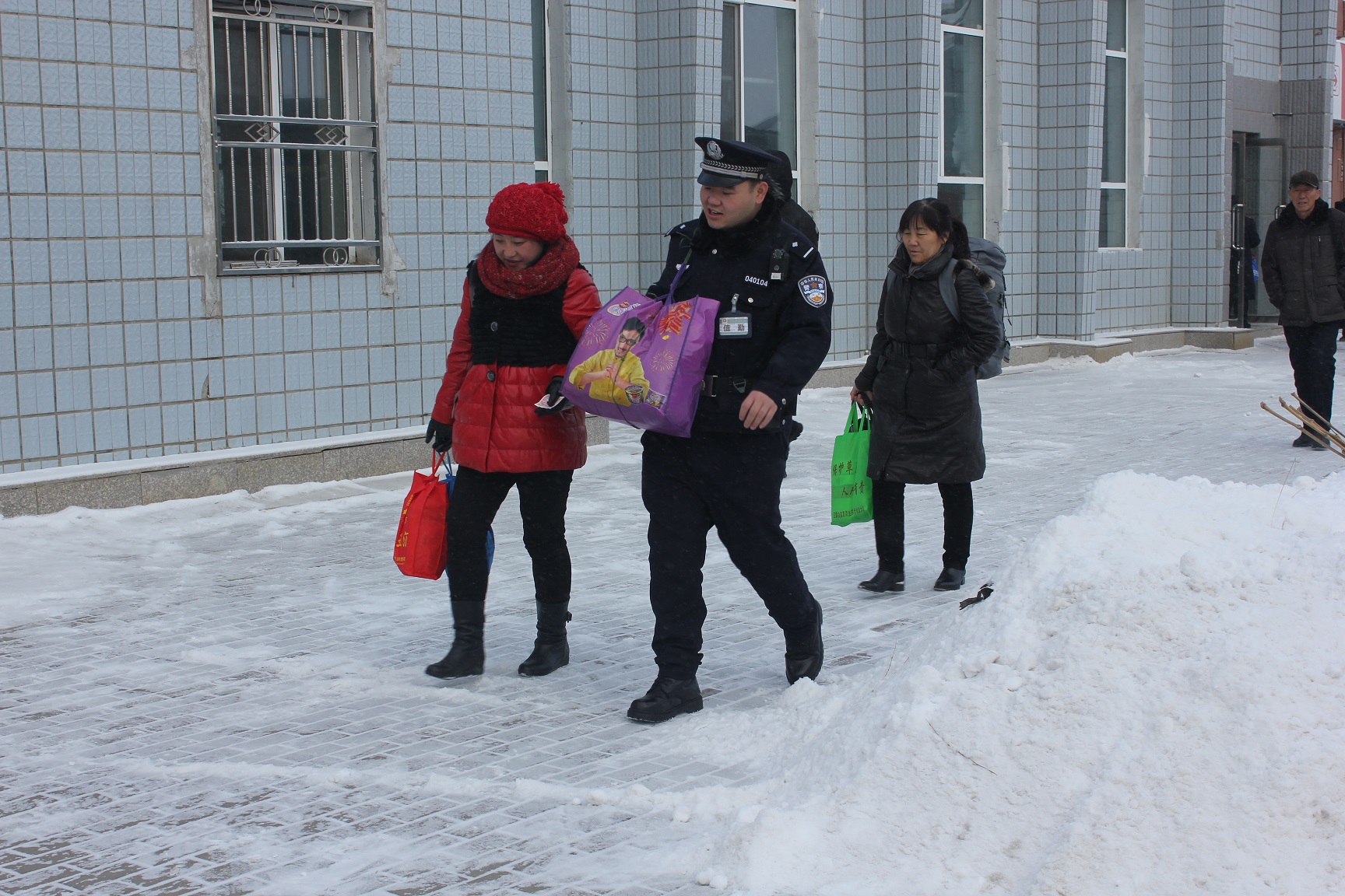 清风网讯(通讯员 付彦隆)为进一步加强客运公共秩序维护,营造良好的乘车环境。2016年12月15日,面对雪后列车晚点导致候车室旅客滞留的现状,锡林浩特铁路公安处迅速增加警力部署,组织青年民警深入站区引导旅客有序进站乘车,帮助旅客搬运行李。同时,民警与车站客运部门积极配合全力维护车站治安秩序,加强对进出站口、站台、候车室等重点部位的疏导组织,并及时向旅客讲解出行安全防范小常识,时刻提醒旅客加强对个人行李物品的看管,以防遗失、被盗。