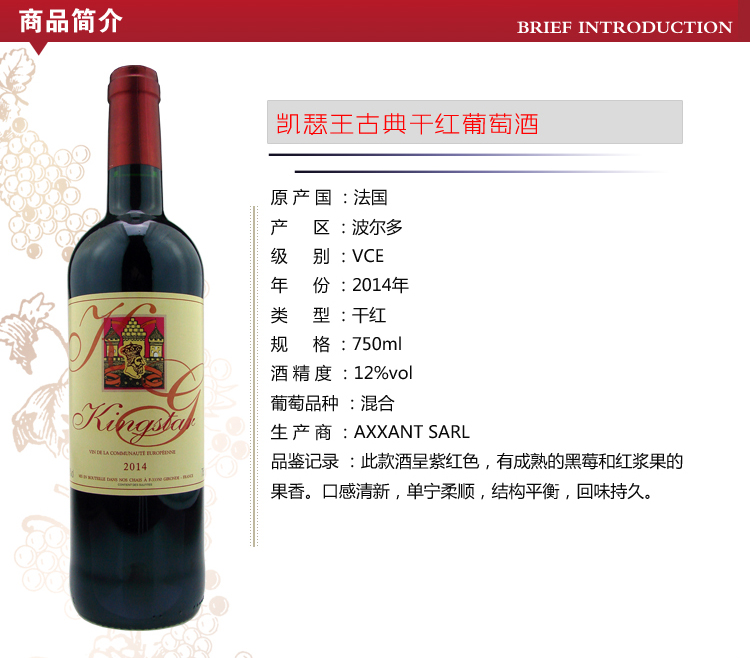 凯瑟王国际酒庄:凱瑟王古典干红葡萄酒