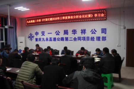 清风网讯∶(特约记者 常魁星 通讯员 刘婕婵)12月18日,中交一公局重庆九永高速公路二分部对《中国交建2016年三季度事故分析会议纪要》进行了学习。在岁末年初之际,通过对集团2016年三季度事故进行学习,提高全体职工安全意识,保证项目施工安全。