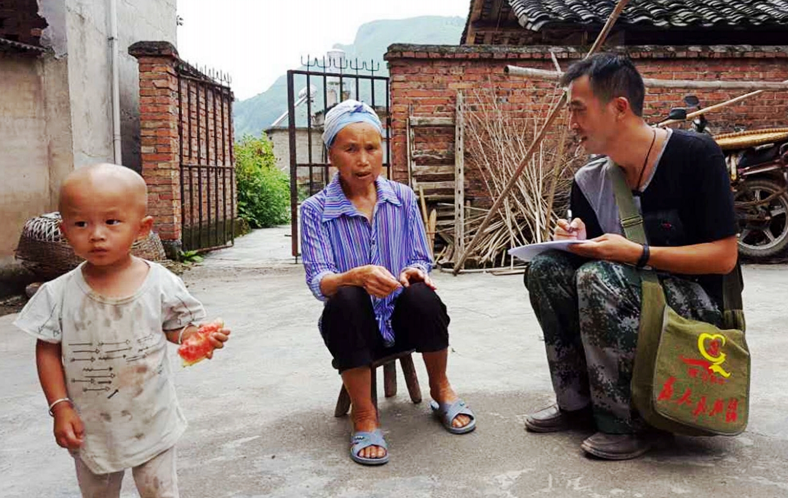 图为陈刚在潘玉德家做修建沟渠的思想工作