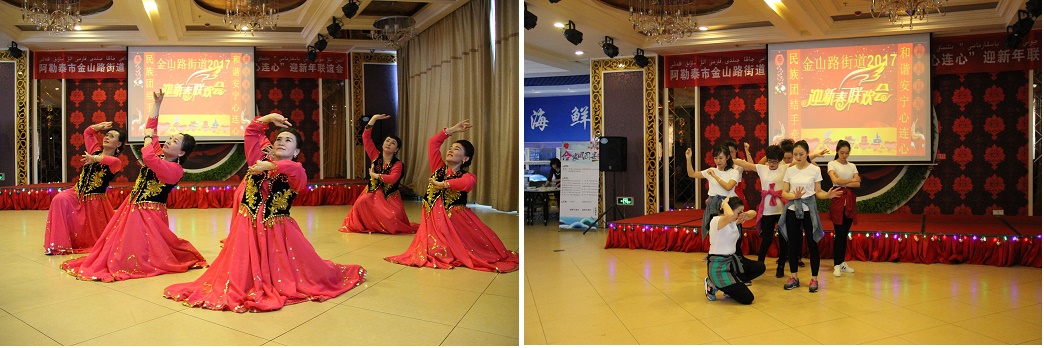 活动的最后,街道党工委书记周红梅带领干部群众共同唱响原创民族团结歌曲《我们是一家亲》,干部与亲戚跳起黑走马,在欢身笑语中为本次活动画上圆满的句号。街道党工委委员赵红燕说:“今年,金山路街道在原有结对认亲活动的基础上,进一步开展‘三步走’,让干部们积极走出办公室,走入结对亲人家中,从而进一步走进结对亲人心里。新的一年即将到来,我们将携手自己的结对亲戚们共同迎接更加美好的2017!”